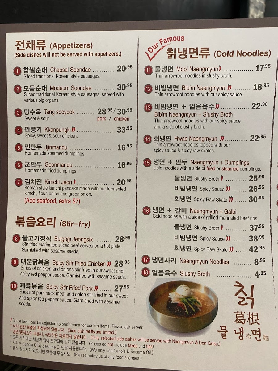For the main course, don’t miss the Kimchi Jjim, with perfectly aged kimchi and pork braised in a homemade sauce, or the spicy Yook Gae Jang, renowned for its bold flavors. Pair your meal with the Naengmyun combo options, expanding your culinary journey into the depths of Korean dining. With generous portions and a warm atmosphere, Cho Sun Ok invites you to savor the essence of Korean flavors in every bite.